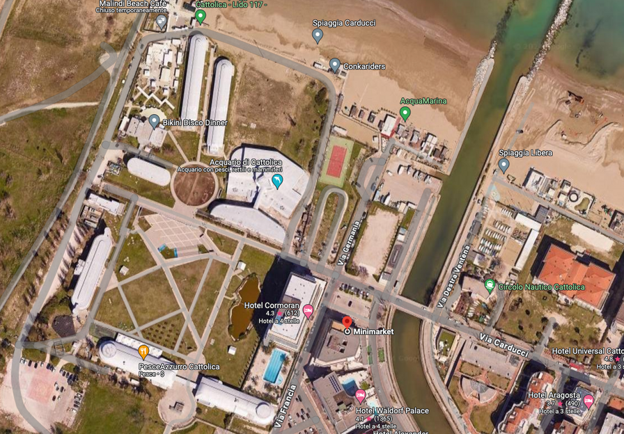 facilissimo da trovare, sul mare . seguite le indicazioni per Aquario le navi e hotel cormoran.